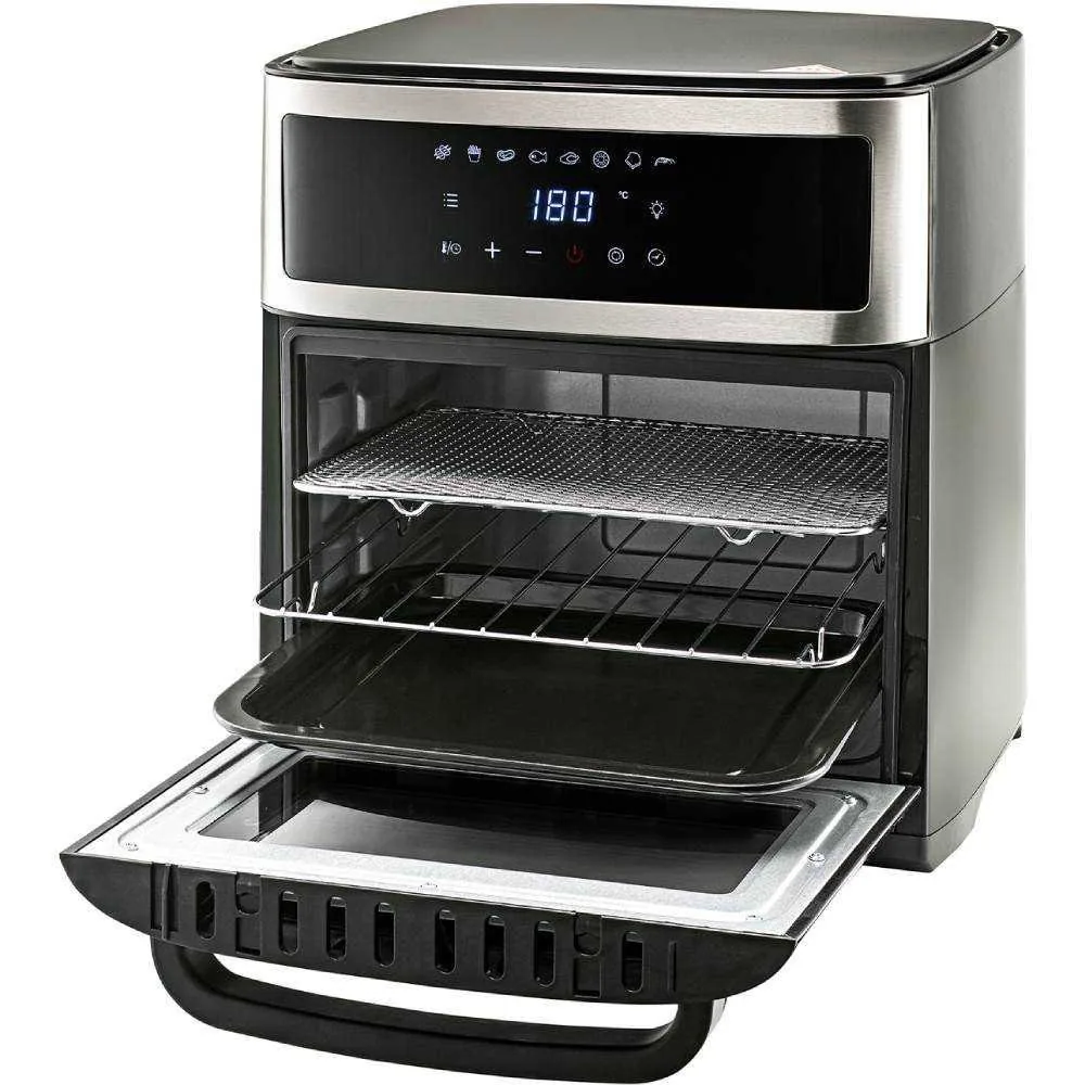 Цей прилад оснащений цифровим керуванням та внутрішнім освітленням, що дозволяє зручно спостерігати за процесом приготування. В комплект входять аксесуари: решітка для гриля, деко для запікання та 4 сітчасті решітки для сушіння, що забезпечують велику площу для приготування.