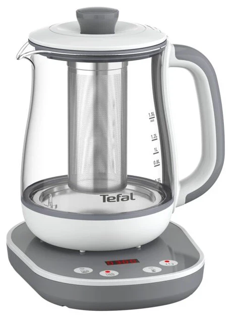 Чайник має об’єм 1,5 л, що ідеально підходить для сімейних чаювань або прийому гостей. Знімне ситечко з нержавіючої сталі дозволяє використовувати пристрій як заварник, а за потреби — як звичайний електрочайник для кип’ятіння води.