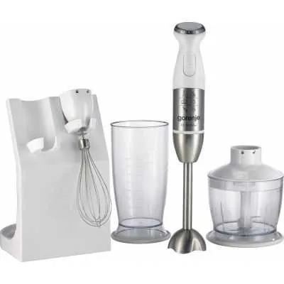 | Комплектація | Блендер, подрібнювач з чашею, металева блендерна насадка, чаша для змішування та збивання, підставка, вінчик для збивання, гарантійний талон, інструкція з експлуатації |