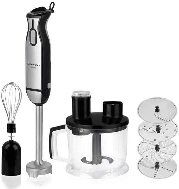 Блендер Liberton 1000Вт, нерж.ножк,стакан- 600мл.,подрібнювач-1750мл.,вінчик,терки,шинковка.