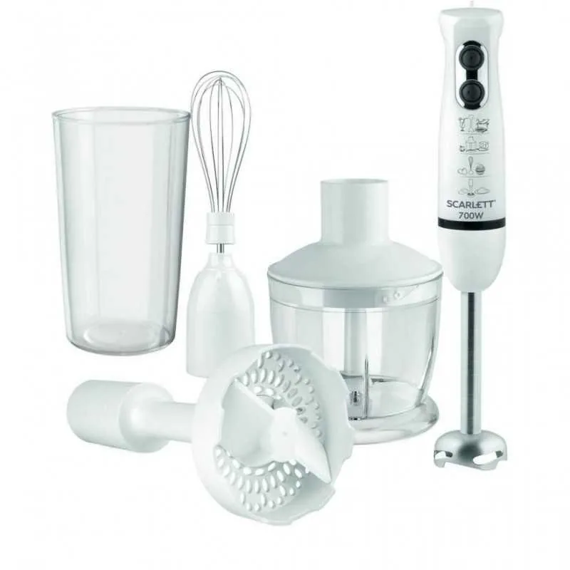 Блендер Scarlett 700Вт, нерж.ніжк.,стакан-600мл.,подрібнювач-600мл.,вінчик,насадка для пюре.