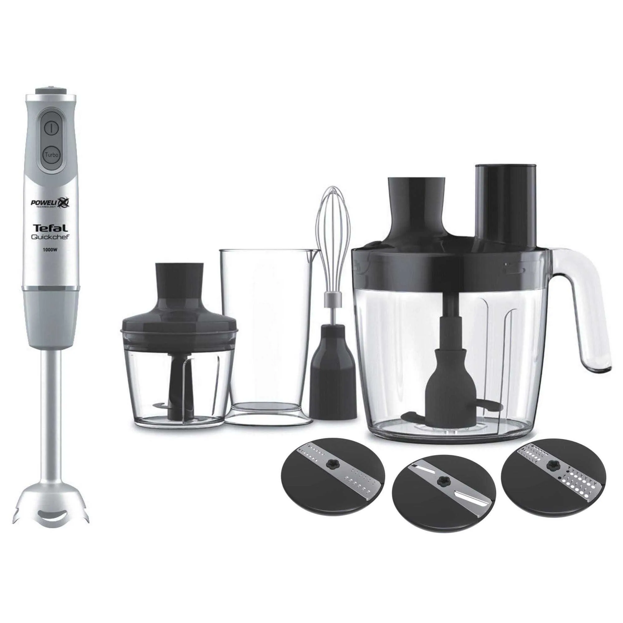 Блендер TEFAL 1000вт.,ніжк.нерж.,стакан-800мл.,подрібнювач-500мл.,вінчик,шинковка-слайсер,терка:-2шт.,крюк для зам.тіста,турборежим,колка льда.