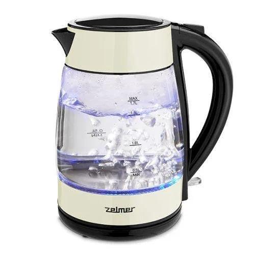 Електрочайник Зелмер ZCK8011I - модель оснащена світлодіодною підсвіткою скляного корпусу та декількома системами захисту.