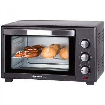 First FA-5043-1 – компактна настільна електропіч потужністю 1,6 кВт.Модель має інтуїтивно зрозумілу панель управління і може похвалитися широким функціоналом і багатим набором додаткових аксесуарів для комфортного користування.Об'єм духовки становить 30 літрів, за наявності двох нагрівальних елементів цього достатньо, щоб всього за кілька хвилин підсмажити хлібці, приготувати на сніданок бутерброди або подати до святкового столу фірмову страву з ароматною скоринкою, що хрумкає.Два нагрівальні елементи здатні працювати як окремо, так і одночасно, створюючи оптимальні умови для приготування. Така конструктивна особливість дозволяє експериментувати з рецептами та завжди радувати близьких та рідних традиційними стравами у новому виконанні.Зручність користування також гарантує підсвічування камери, галогенова лампа висвітлює кожен куточок духовки, тому немає необхідності щоразу відкривати дверцята, щоб переконатися у правильності наступних дій.Для тих, хто часто готує складні страви, що потребують декількох режимів приготування, передбачено таймер на 60 хвилин і регулятор температури. Останній дозволяє змінювати температуру приготування, а значить, духовка призначена не тільки для випікання, а й смаження, томлення та гриль.First FA-5043-1 – це оптимальне вкладення засобів у комфорт та легкість користування, ідеальна духовка для сім'ї з 3-4 осіб.Характеристики:Об'єм, л: 30Діапазон температури: 100 - 230 °СКількість режимів приготування: 6ГрильКонвекціяТаймер: 60 хвАвтовимкненняВнутрішнє підсвічуванняЗвуковий сигналТермоізоляціяВнутрішнє покриття: Нержавіюча стальКомплектація: Деко; Грати-гриль; Щипці; Піддон для крихтКолір корпусу: ЧорнийТип управління: МеханічнеПотужність: 1380 ВтКількість скла у дверях: 2Вага: 9 кгВага в упаковці: 9.5 кгГабарити (ВхШхГ): 31 х 50.5 х 38.5 смГабарити в упаковці (ВхШхГ): 36 х 55 х 43 смКраїна-виробник товару: КитайКраїна реєстрації бренду: Австрія