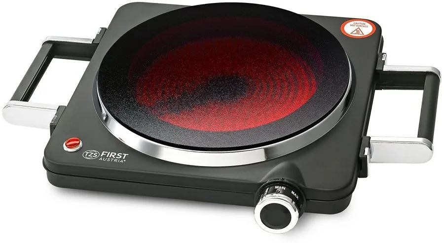 | Додаткові характеристики | Температура варильної поверхні приблизно 400 °C, Робоча поверхня з високоміцного кристалітового скла, Металевий корпус, Мережевий індикатор, Регулятор температури, Хромовані ручки для перенесення |