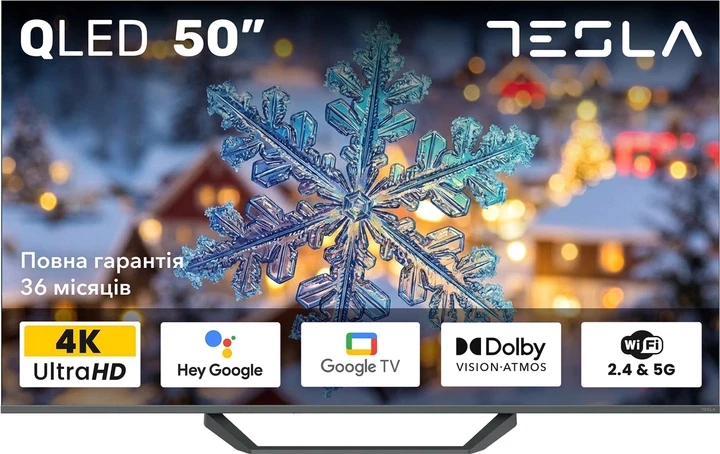 Телевізор Tesla Q50E655GUS — це сучасне рішення для користувачів, які хочуть отримати максимум можливостей від домашнього розважального центру. Великий 50-дюймовий екран із технологією QLED / Quantum Dot забезпечує насичені кольори, високий рівень контрастності та глибоку деталізацію. Завдяки роздільній здатності 4K Ultra HD та підтримці HDR і HLG, навіть складні сцени з великою кількістю світла або тіні виглядають реалістично та виразно.