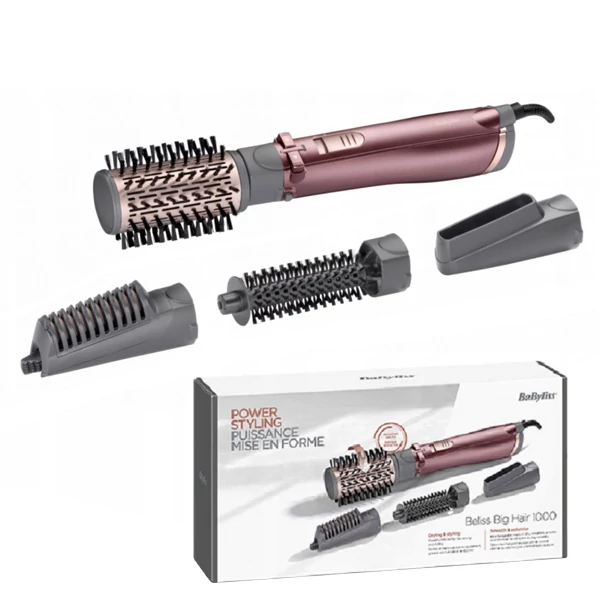 Потужність пристрою — 1000 Вт. Завдяки цьому ви зможете з легкістю стилізувати будь-які зачіски та укладати навіть неслухняне волосся.Технологія іонізації у пристроях BaByliss допомагає усунути статичну електрику, запобігає сплутуванню волосся та робить його м'яким, слухняним і блискучим.Завдяки обертовій керамічній насадці діаметром 50 мм перед вами відкриваються неймовірні гнучкі можливості стайлінгу. М'яка щетина дбайливо розчісуватиме ваше волосся, а керамічне покриття надійно захистить його від шкідливого впливу високих температур.Мультиобертання: насадки фен-щітки обертаються в обох напрямках, щоб вам було ще простіше створювати пишні зачіски та стильні укладки.В комплект входять 2 додаткові насадки: концентратор для сушіння та ексклюзивна насадка з керамічними зубчиками та TensioControlSystem — системою контролю натягу волосся.Насадка з натуральної щетини дикого кабана діаметром 20 мм дозволить вам м'яко і дбайливо прочесати волосся та додати завершальні штрихи до вашої зачіски.В комплект до фен-щітки входить зручна косметичка, яку ви можете використовувати для безпечного зберігання та транспортування вашого девайса.