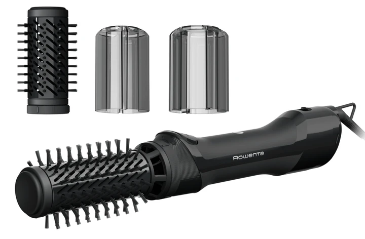У комплекті — 2 насадки-щітки діаметром 50 мм і 40 мм із синтетичною щетиною, які обертаються в обидва боки. Це дозволяє легко створювати природні хвилі або чіткі вертикальні локони. Керамічне покриття нагрівального елемента забезпечує рівномірний розподіл тепла, зменшуючи ризик пересушування волосся.