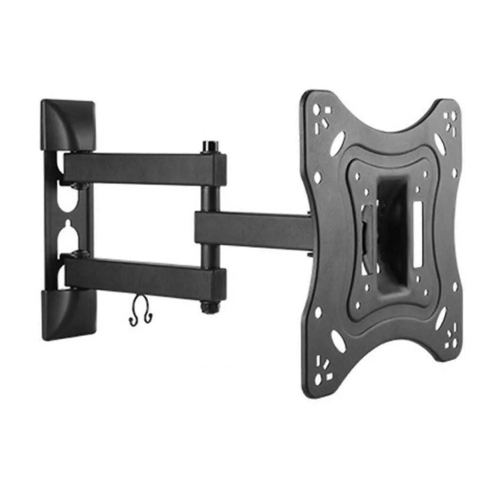 Кронштейн виготовлений з металу, що забезпечує міцність та надійність. Чорний колір додає елегантності, а поворотний монтаж дозволяє без зусиль змінювати напрямок телевізора для зручного перегляду з будь-якої точки кімнати.