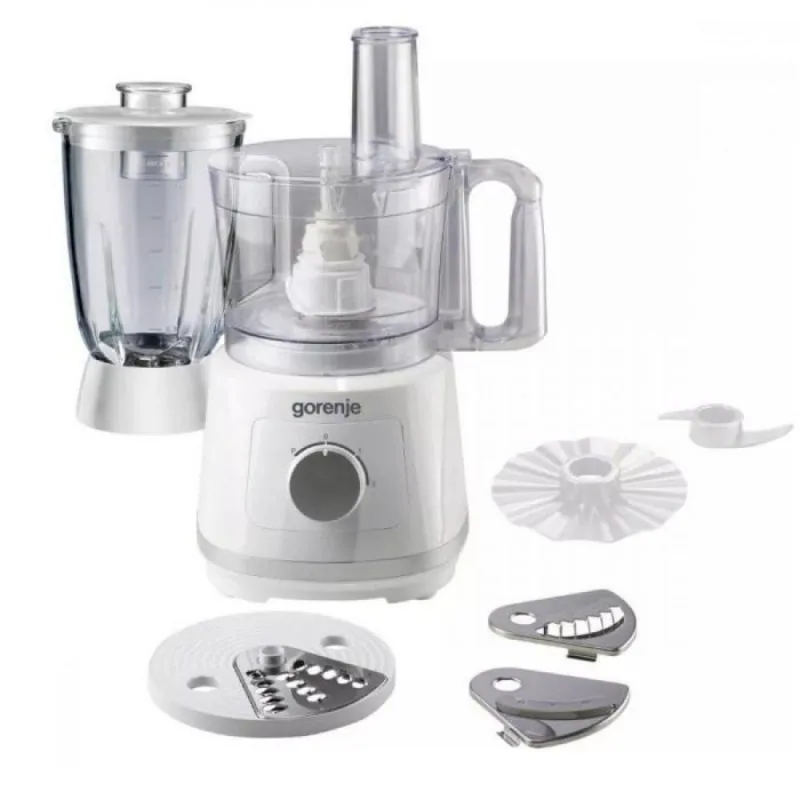 Для роботи з такими твердими інгредієнтами, як овочі, горіхи або тісто, потрібна велика потужність. Ефективний двигун потужністю 800 Вт допоможе вам досягти бажаного результату. Насолоджуйтесь цим необхідним приладом із широкими можливостями.Насадки для нарізки, розминання, подрібнення, шаткування, змішування. Практично немає нічого, чого не міг зробити цей практичний процесор з численними насадками. Насадки можна легко мити в посудомийній машині.Чаша об'ємом 1,5 л оснащена мірними мітками та дозуючим стаканчиком у верхній частині кришки. Немає необхідності знімати кришку під час додавання інгредієнтів.Харчовий комбайн оснащений подвійним лезом із нержавіючої сталі. Воно забезпечує ефективне та швидке подрібнення та нарізку. У літню пору ніж може бути особливо корисний завдяки своїй здатності подрібнювати лід.Щоб такий потужний пристрій залишався на місці, він повинен мати належну форму та гумові ніжки знизу, завдяки яким прилад не рухається під час роботи або при від'єднанні чаші.
