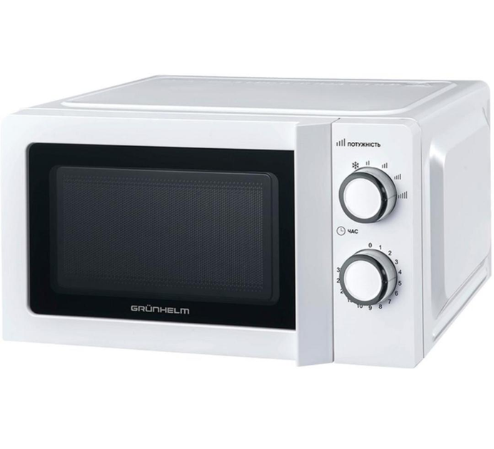 Мікрохвильова піч Grunhelm 20MX711-W — це надійний і простий у використанні прилад для щоденних завдань на кухні. З потужністю 700 Вт і об'ємом 20 л, вона ідеально підходить для розігріву та приготування їжі для невеликої родини. Механічне керування та поворотний стіл діаметром 24.5 см гарантують рівномірний прогрів страв.