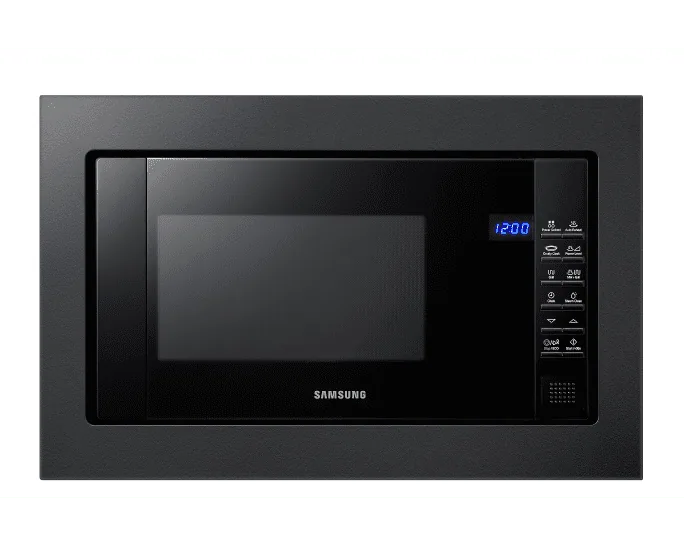 Габарити мікрохвильової печі Samsung MG23A7013CT/EO (38.1 x 59.6 x 36.2 см) дозволяють легко вбудувати її в кухонну меблі, а розміри для вбудовування (36.2 x 56 x 55 см) забезпечують зручне монтажне рішення для будь-якої кухні. Це ідеальний вибір для тих, хто шукає надійність, стиль та інноваційні функції.