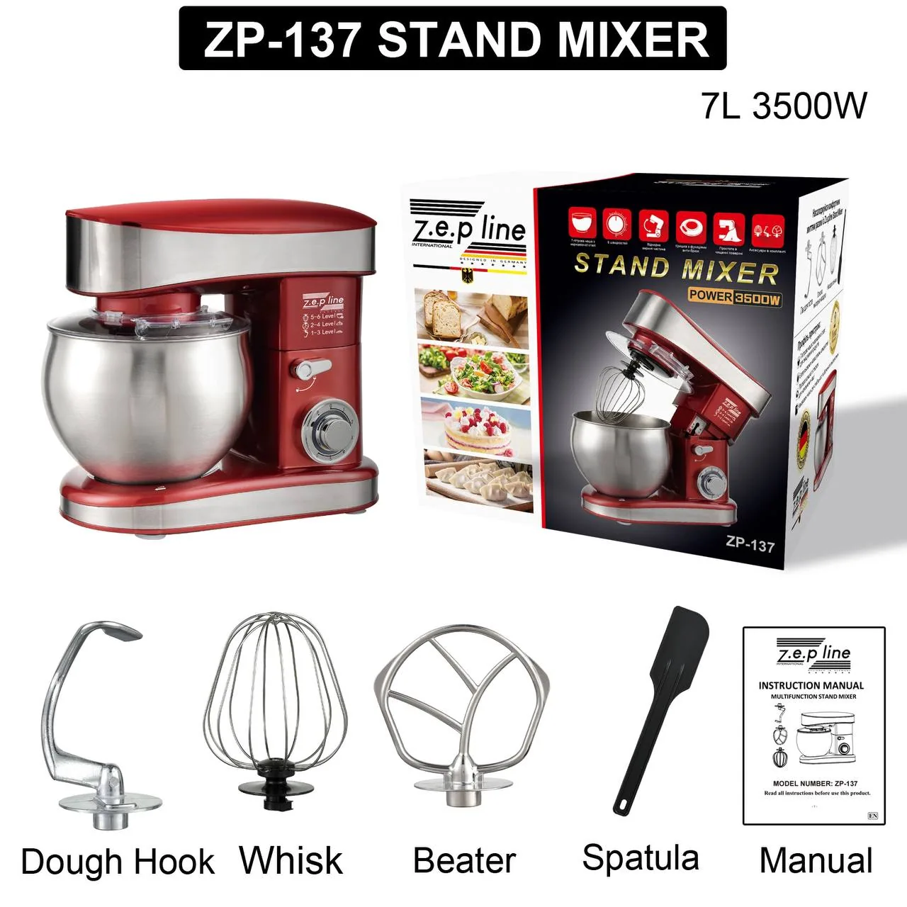 – Чаша 7 л з нержавіючої сталі– Мідний двигун– Матеріал корпусу: Нержавіюча сталь– Легко миється та чиститься– Потужність двигуна 3500 Вт– Прозора знімна кришка чаші з отворами для можливості додавання продуктів у будь який час– 6 швидкісних режимів– Колір – Червоний