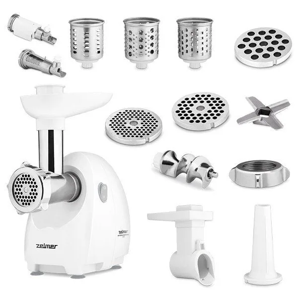 Мясорубка Zelmer 1900вт.,решітка 3шт.,двохсторонній ніж,терка,шинковка,соковитискач,для колбаси. ZMM4055B
