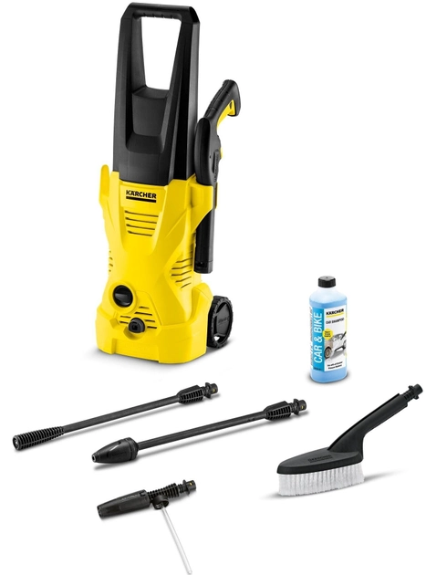 K2 Car має рухомі колеса та ідеально підходить для видалення несильних забруднень навколо будинку. Комплект Car спеціально створений для миття автомобіля. До комплекту миюча щітка для видалення сірого нальоту, пінна насадка 0,3 л та авто-шампунь 500 мл. Не дивлячись на відносно невелику потужність, ця модель допоможе Вам швидко і легко відмити автомобіль. Крім того, міні-мийка оснащена пістолетом, 4 м шланга високого тиску, струменевою трубкою, фрезою для бруду для видалення стійких забруднень та фільтром попереднього очищення води.