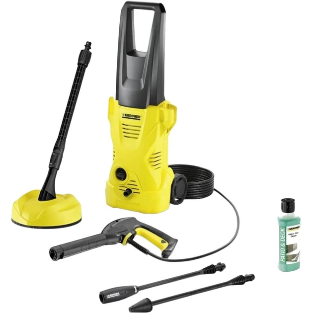 Бренд KarcherВикористання миючого засобу ЄМаксимальна температура води на вході 40 °CМаксимальний тиск 110 барПотужність 1400 ВтНапруга мережі 220 ВНасадки струминна трубка, адаптер підключення до садового шлангу, грязьова фреза, пістолет високого тискуВитрата води 360 л/год.Мережевий шнур 5 мТип побутоваТип двигуна електродвигунФільтр води ЄШланг високого тиску 4 м