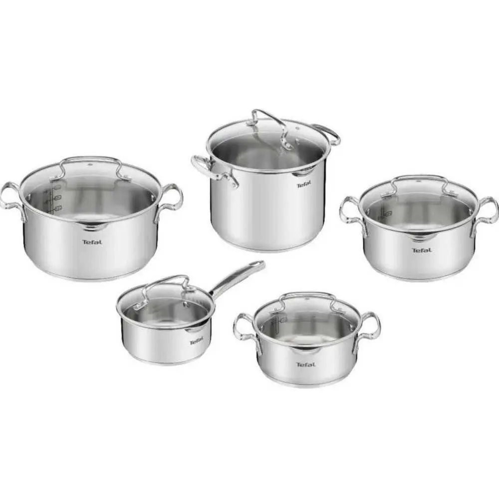 Набір посуду Tefal каструля 5л.,4л.,2л.,1.5л.,ковш 1л.,полірована нерж.сталь,скляні кришки,сумісні з всіма видами плит ,використання в дух.шкафу. G719SA74