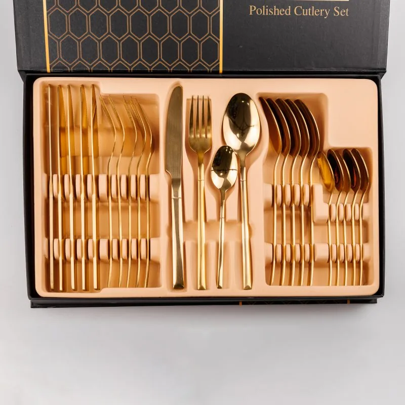 Набір столових приборів на 6 персон із гладкою поверхнею, золото