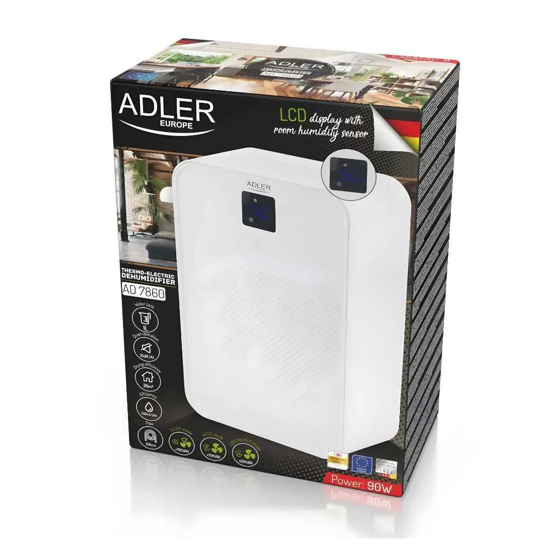 Осушувач повітря Adler до 30м2.,500мл./24год.,рез.для води 1000мл.,3 реж.роботи,звуковий сигнал,дисплей,датчик вологи. AD 7860
