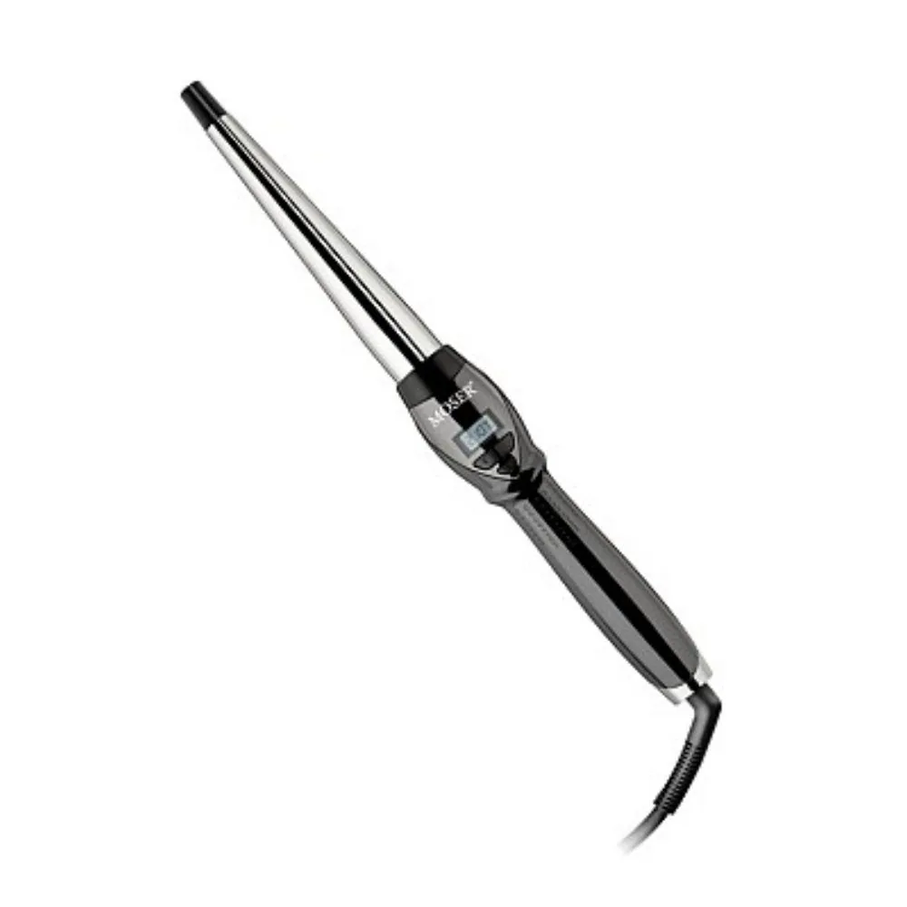 З максимальним діаметром 25 мм в основі та 13 мм на наконечнику, плойка Moser пропонує можливість створення локонів різного розміру. Вона нагрівається до 210°C всього за 30 секунд, що дозволяє швидко приступити до укладання. Електронний терморегулятор з LCD-дисплеєм дає можливість точно налаштувати температуру для кожного типу волосся.