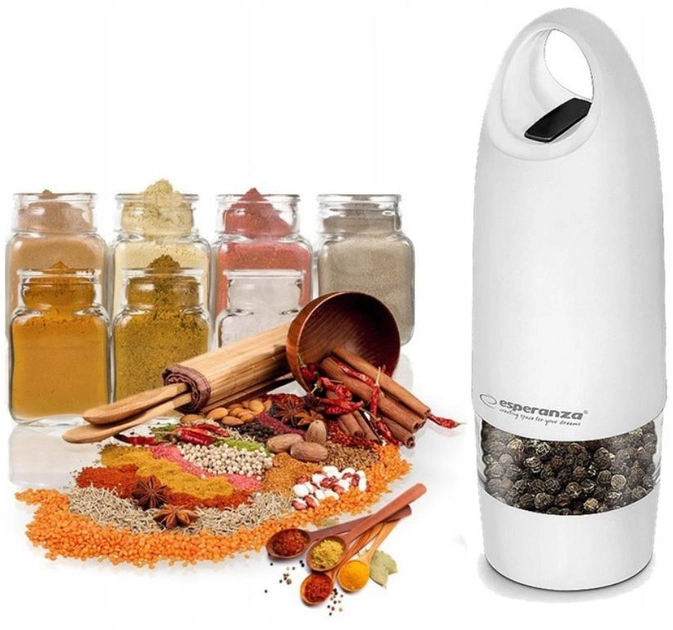 Подрібнювач спецій Esperanza Muntok EKP003W – це ідеальний вибір для тих, хто хоче швидко та зручно подрібнювати спеції на кухні. Компактний та ефективний, він дозволяє за лічені секунди отримати свіжомелену сіль, перець чи інші спеції, зберігаючи їх аромат та смак.