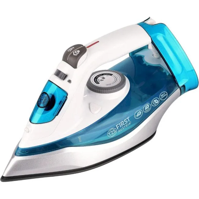 Праска First FA-5627-2-BU — потужний прилад з 2720 Вт для ефективного прасування з керамічною підошвою, яка рівномірно прогрівається, запобігаючи пригоранню тканини. Завдяки її 300 мл резервуару для води, ви зможете прасувати довше без перерв, що додає зручності у використанні.