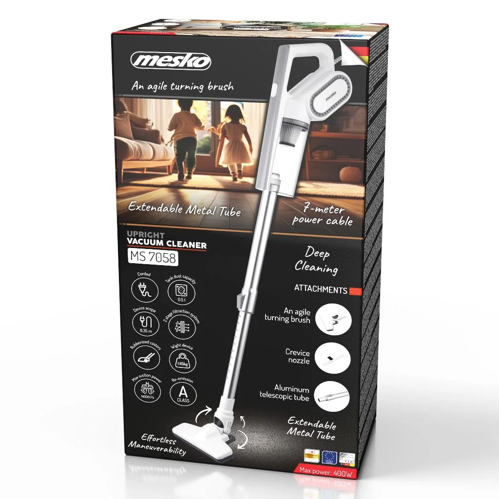 З потужністю 400 Вт і витратою повітря 45.8 м³/с, Mesko MS-7058 надає високу ефективність прибирання на всіх типах поверхонь. Рівень шуму становить 80 дБ, що дозволяє використовувати пилосос навіть в більш тихих приміщеннях.