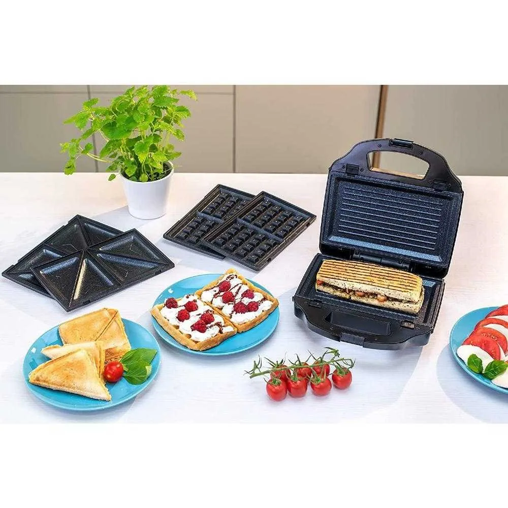 Індикатор готовності та роботи дає змогу точно відслідковувати процес приготування, а антипригарне покриття на пластинах з кам'яним ефектом гарантує легке чищення. Ручки, що не нагріваються, забезпечують комфорт і безпеку під час використання. Крім того, бутербродницю можна зберігати у вертикальному положенні, що дозволяє економити місце на кухні.
