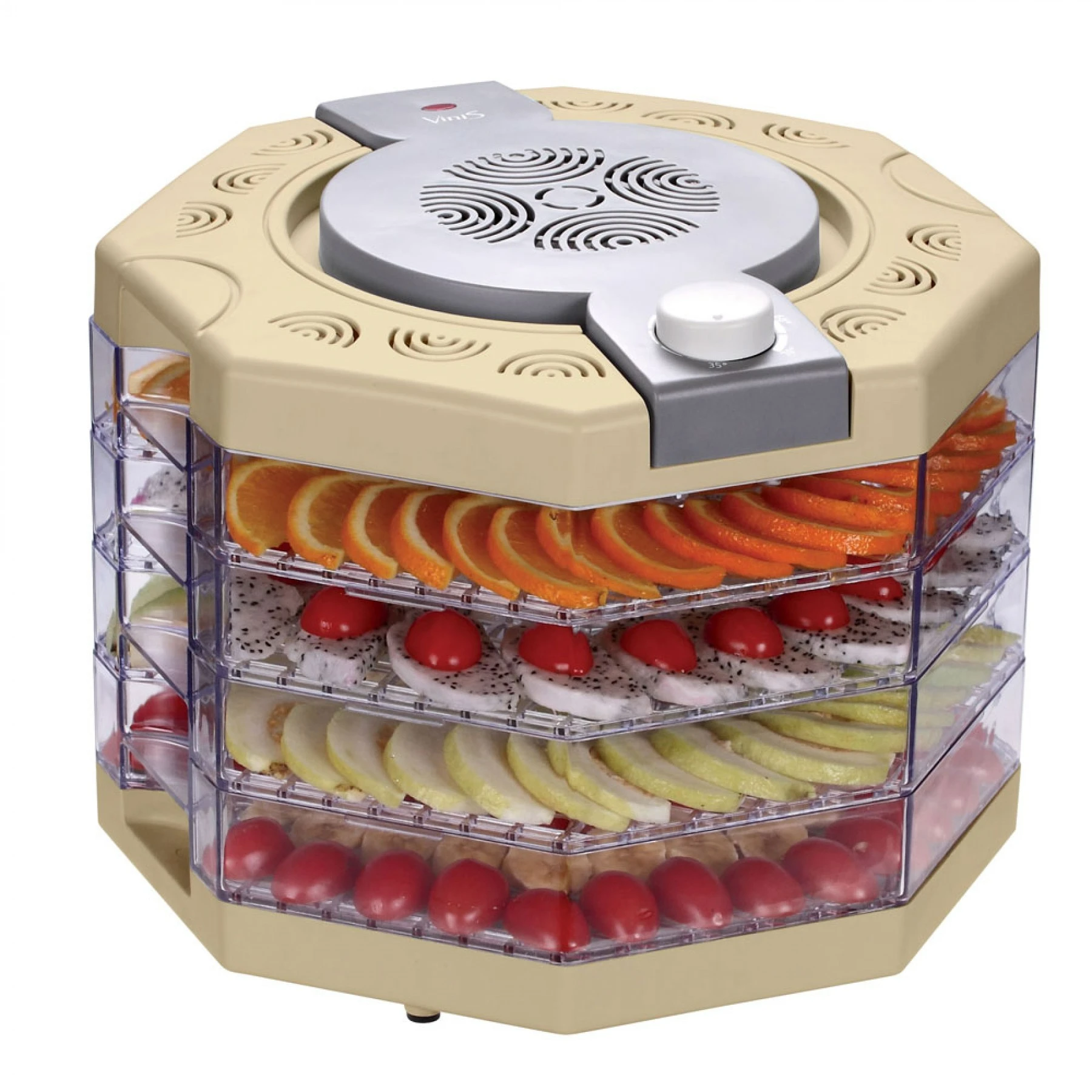 Vinis VFD410C — це зручний і ефективний пристрій для сушіння овочів та фруктів, що допоможе зберегти природний смак і користь продуктів на довгий час.
