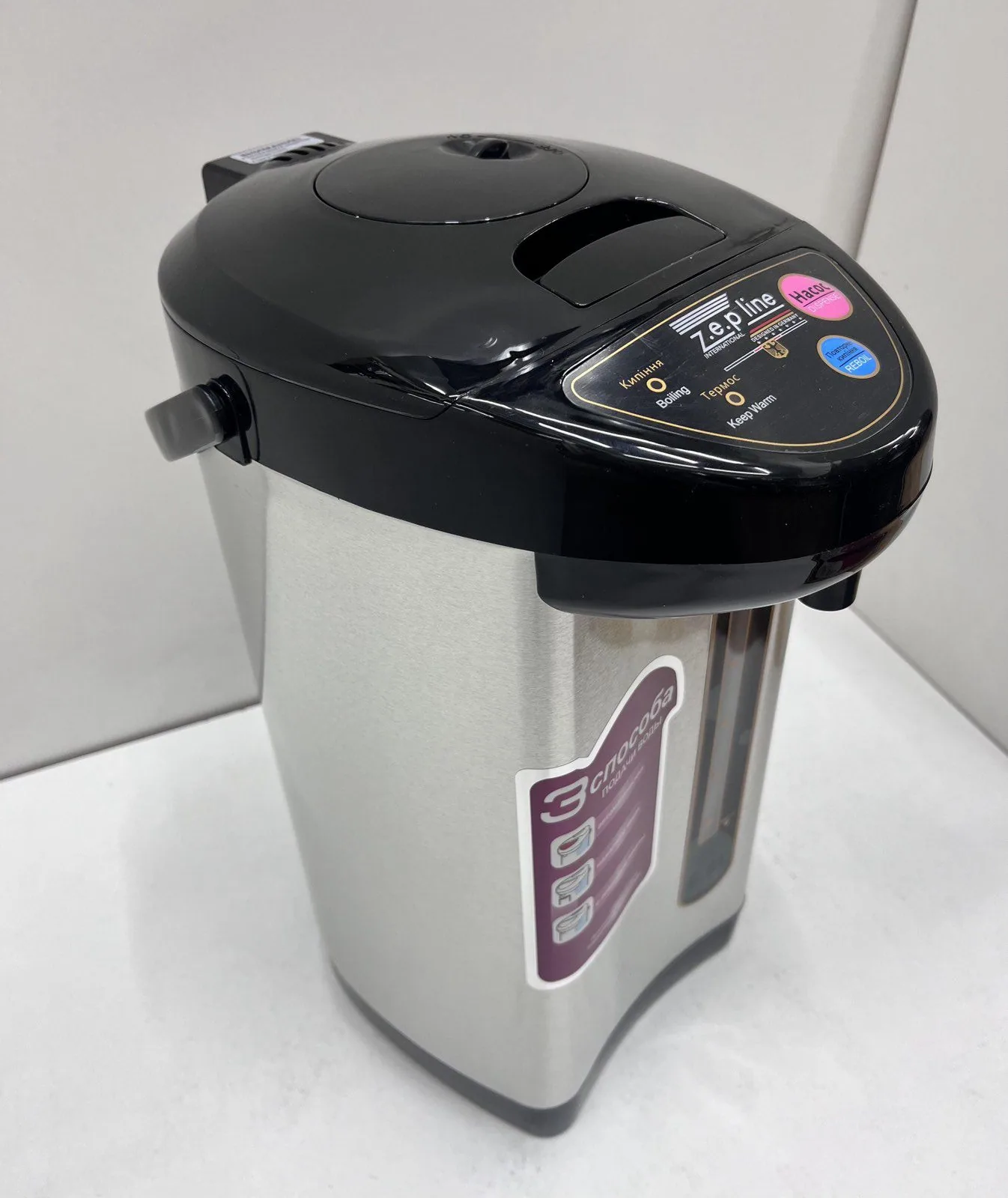 Функція дехлорування та повторного кипʼятіння,збереження тепла• Внутрішня ємність з нержавіючої сталі• Зовнішній корпус з нержавіючої сталі• 3- сторонній дозатор води:1)Електричний насос 2) Повітряний насос 3) Перемикач• Захист від сухого кипіння та перегріву• Основа, що обертається на 360°• Температура кипіння: 100°С