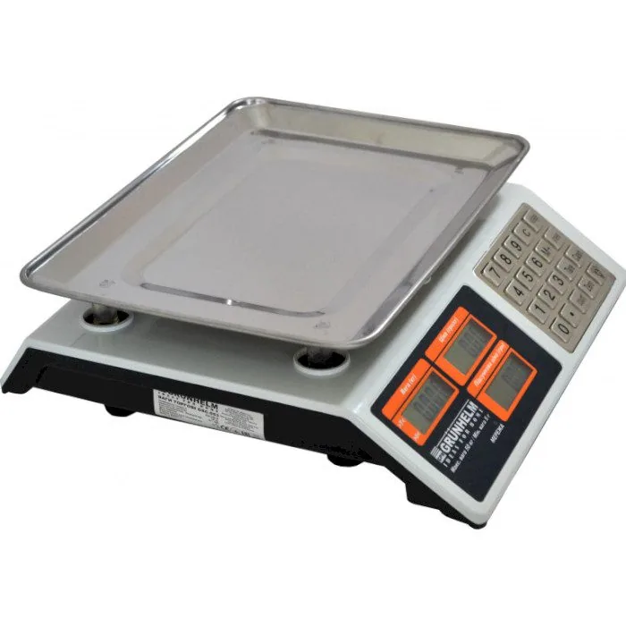 Торгівельні ваги Grunhelm GSC-053 забезпечують точне зважування товарів до 50 кг з кроком вимірювання в 5 г, що робить їх ідеальним вибором для точних розрахунків у торгівлі. Управління здійснюється за допомогою кнопок, що забезпечує зручність у використанні навіть при інтенсивному навантаженні.