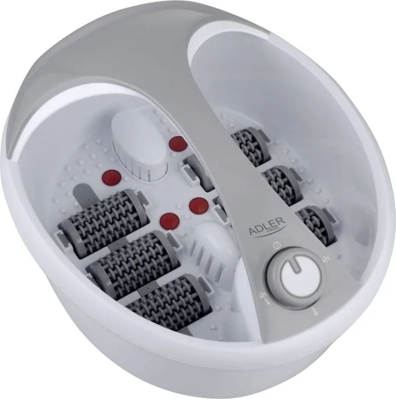 Багатофункціональний масажер для ніг Adler AD 2177 із ручкою для перенесення. Використовується для релаксації та оздоровлення. Він дозволяє проводити різні види масажу: пухирцевий, вібраційний, сухий та тепловий масаж. Підтримка температури води дозволяє проводити комфортний масаж у той час, коли вода зазвичай остигає. Масажер позитивно впливає на кровопостачання стоп, крім того через нервові закінчення на підошвах стоп благотворно впливає на все тіло. Це також дає можливість розслабитися після напруженого дня або після прогулянки в незручному взутті.