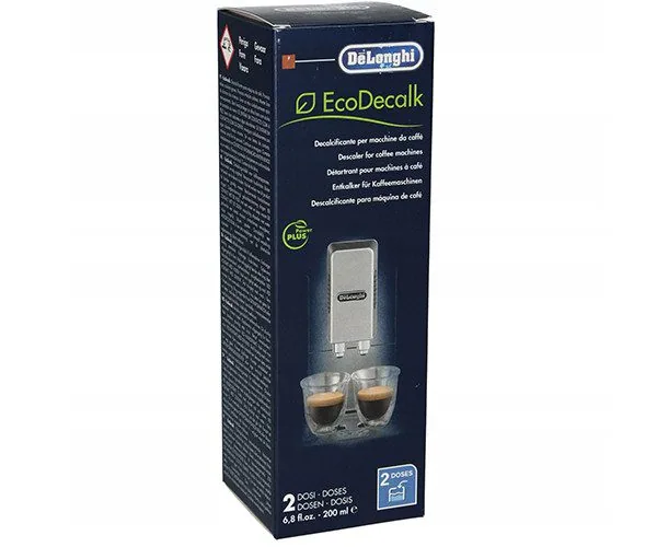 Оригінальна рідина для декальцинації DeLonghi EcoDecalk - це якісний та професійний догляд за кавомашинами та кавоварками DeLonghi! Рідина для декальцинації для кавоварок DeLonghi добре видаляє накип, не пошкоджує машину. Усуває стійкі нашарування вапна, і тримає в чистоті внутрішні частини кавоварки - бездоганно чисто, на основі його антибактеріальної та гігієнічної дії. Тому кавовий смак зберігається тривалий час.Універсальна рідина для видалення накипу DeLonghi EcoDecalk може підтримувати в чистоті кавоварки, кавоварки, чайники.